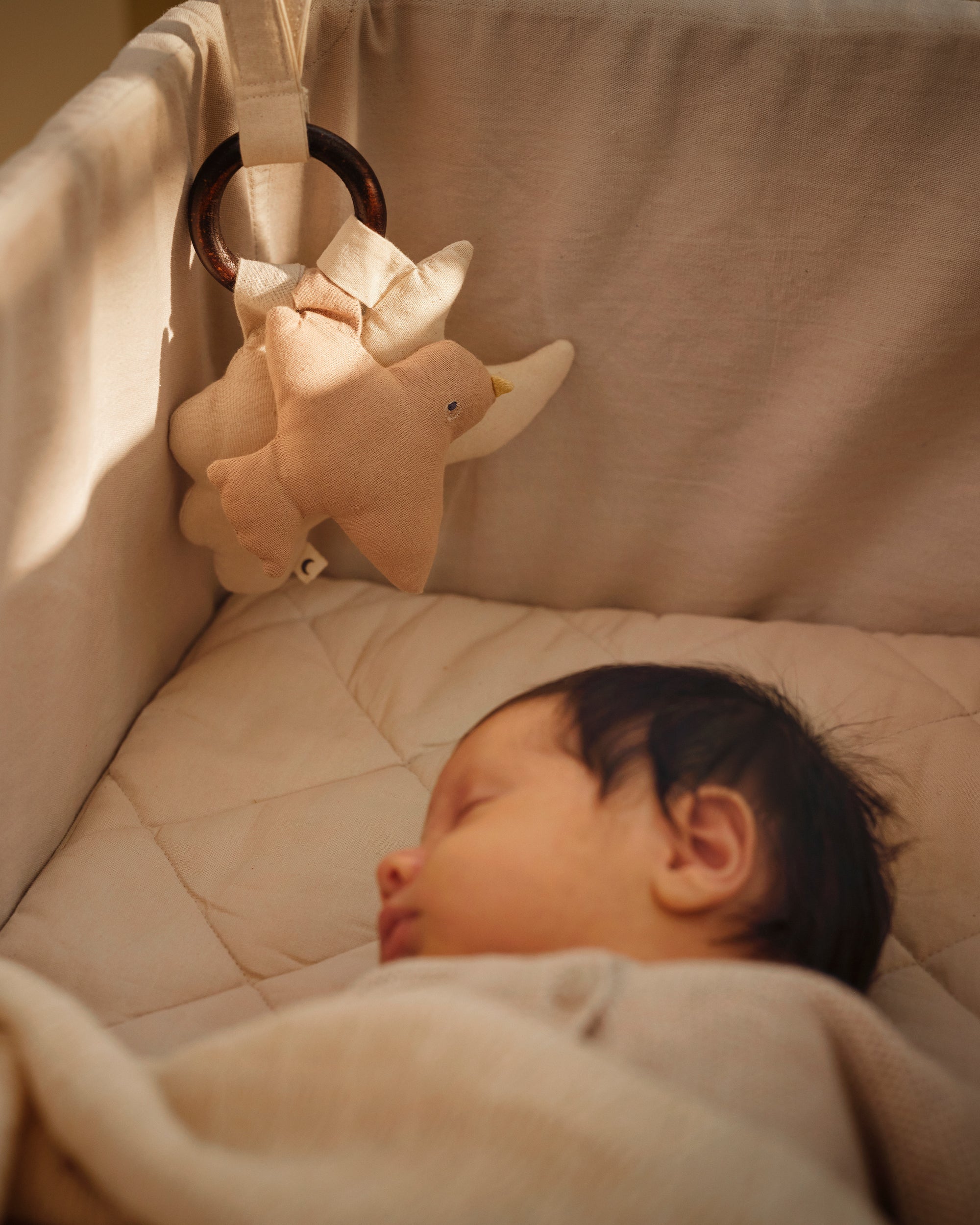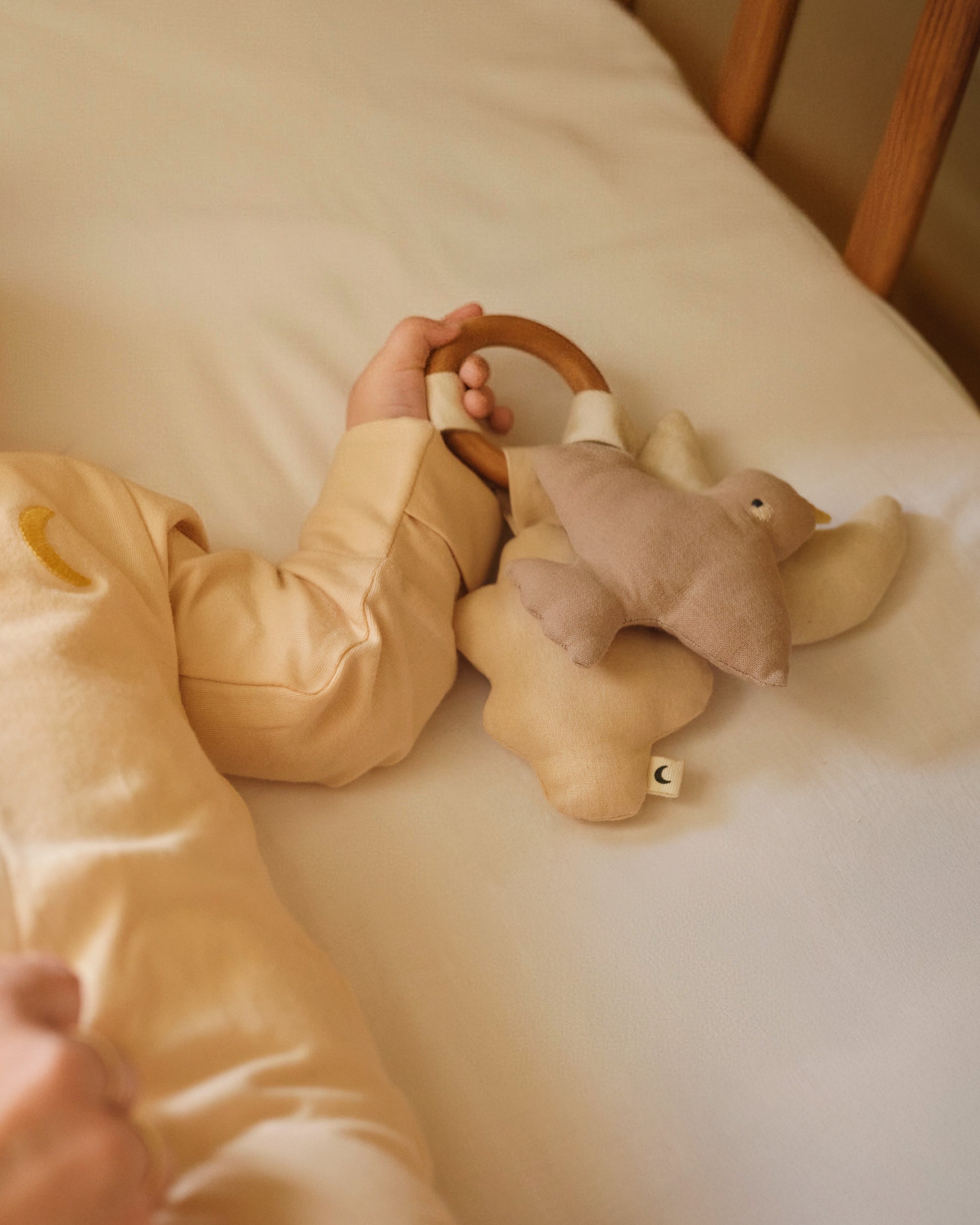 Gør din babys sengetid endnu hyggeligere med vores bløde natbamser skabt ud fra figurerne i vores Ole Lukøje-univers. Perfekt til at skabe en beroligende, sanselig oplevelse, som giver tryghed og komfort. Denne charmerende aktivitetsring vil hurtigt blive en kær følgesvend.